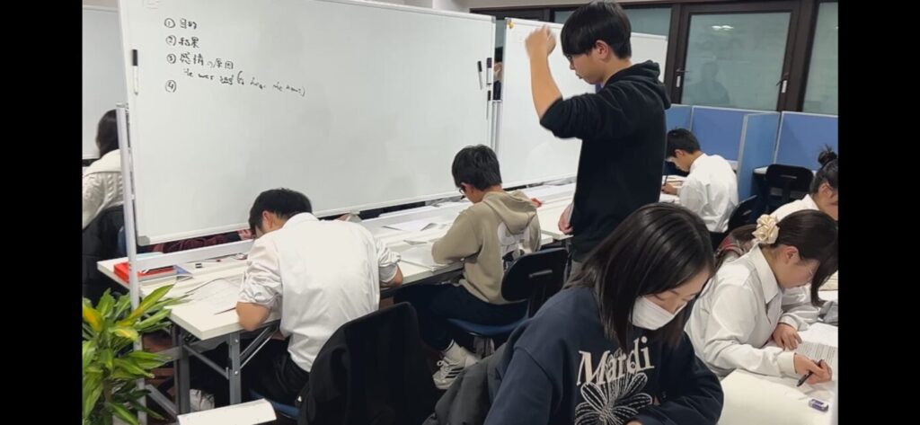 細かい部分ですが、ちゃんと理塾のユニフォームである「理塾パーカー」を着ているんですよ。
