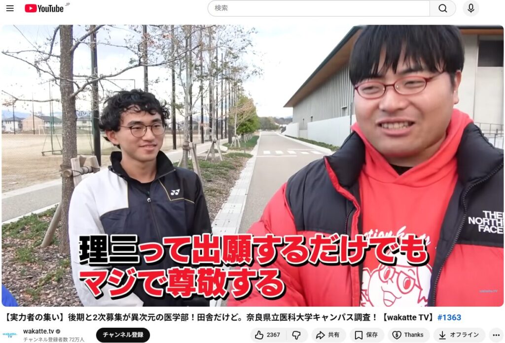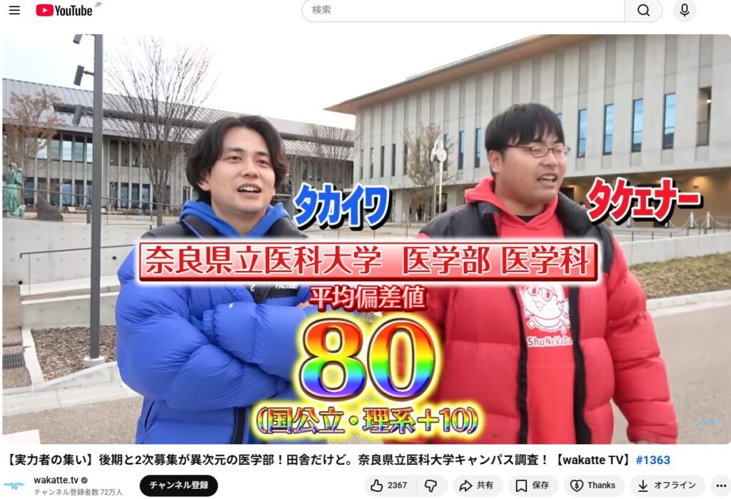 他塾さんの話題で恐縮なんですが、「授業をしない」で有名な武田塾さんのYouTube番組で、奈良県立医科大学が取材されていました。