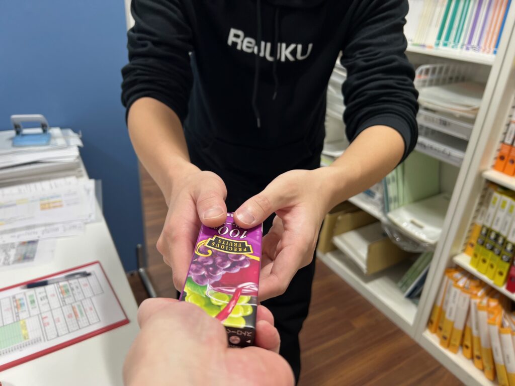 たぶん「毎回いつも軽食が用意される」なんて塾は、そうそうあるわけないんですが、理塾は「毎日働いてくれてありがとう、これ食べて頑張ってな」という気持ちで接しています。
